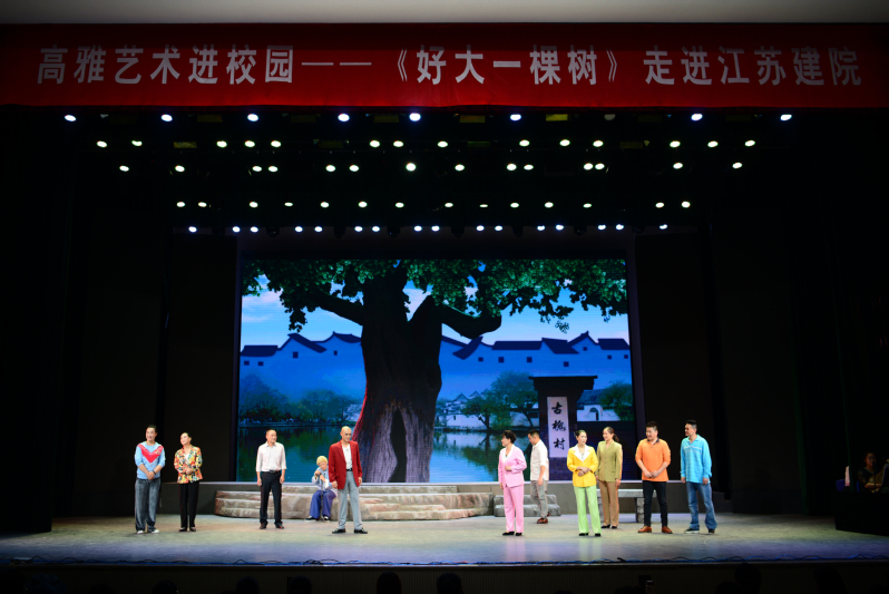 为进一步弘扬社会主义核心价值观,传承中华优秀传统文化,提高学生审美与人文素养,推动学校美育发展,学校举办了高雅艺术进校园系列活动,形式多样,场次众多。继5月21日及6月4日两场江苏梆子剧演出后,我校再迎第三场传统戏剧演出。7月2日下午,江苏省柳琴剧院携大型新创柳琴现代戏《好大一棵树》走进我校,为师生们讲述了一段意蕴深邃的故事。