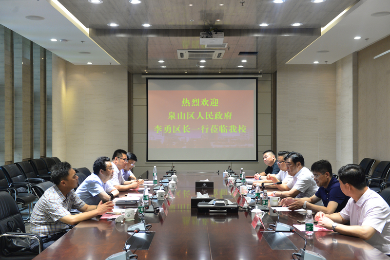 7月10日上午,泉山区人民政府区长李勇、副区长董海林,江苏淮海科技城管委会副主任、政府办公室主任魏洪亮、科技局局长彭弘一行来校考察。学校党委书记孙进教授、副院长曾凡远、刘海波和来访客人在图书馆一会议室交流座谈。