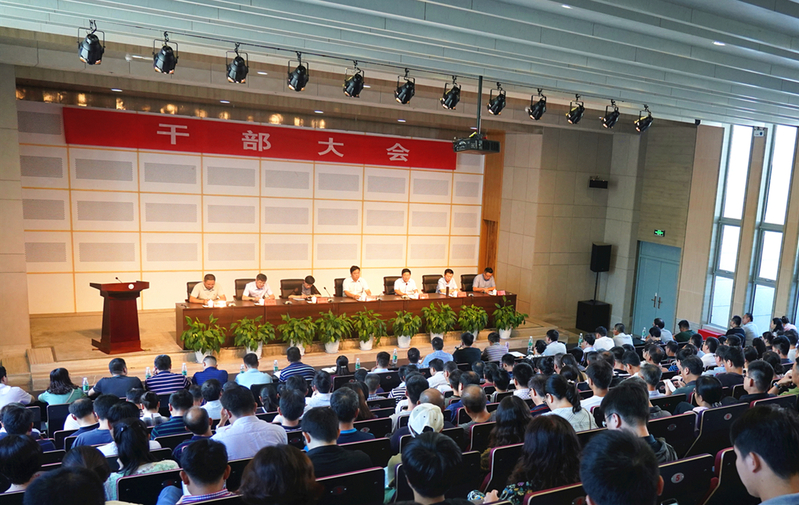 8月30日下午,学校在图书馆报告厅召开新学期干部大会,总结暑期工作完成情况,部署新学期重点工作安排。校领导孙进、沈士德、梁惠、魏勇、曾凡远、刘海波、蒋兆峰出席会议,党委副书记梁惠主持会议。