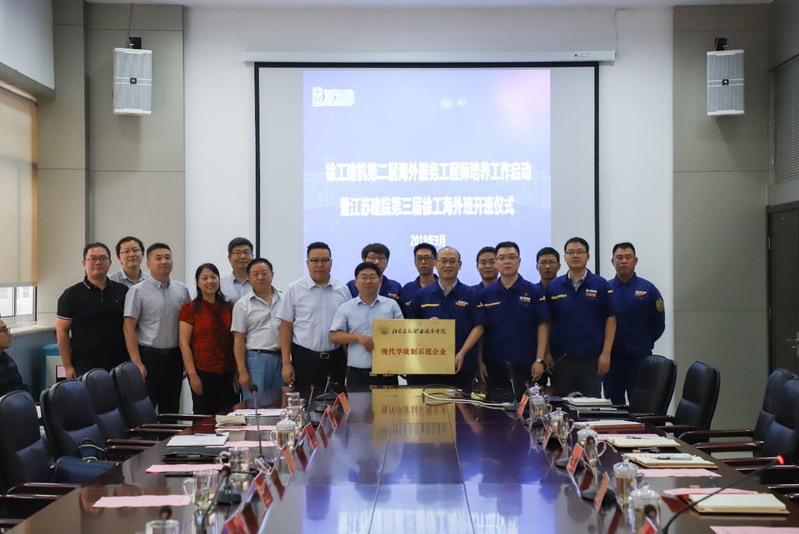 9月17日下午,徐工建机第二届海外服务工程师培养工作启动暨江苏建院第三届徐工海外班开班仪式在徐工集团徐工建设机械分公司会议室举行。院长沈士德、副院长刘海波及教务处、校企合作处、智能制造学院负责人与徐工建机总经理陈卫东、党总支副书记李红飞及各职能部门负责人共同出席仪式。