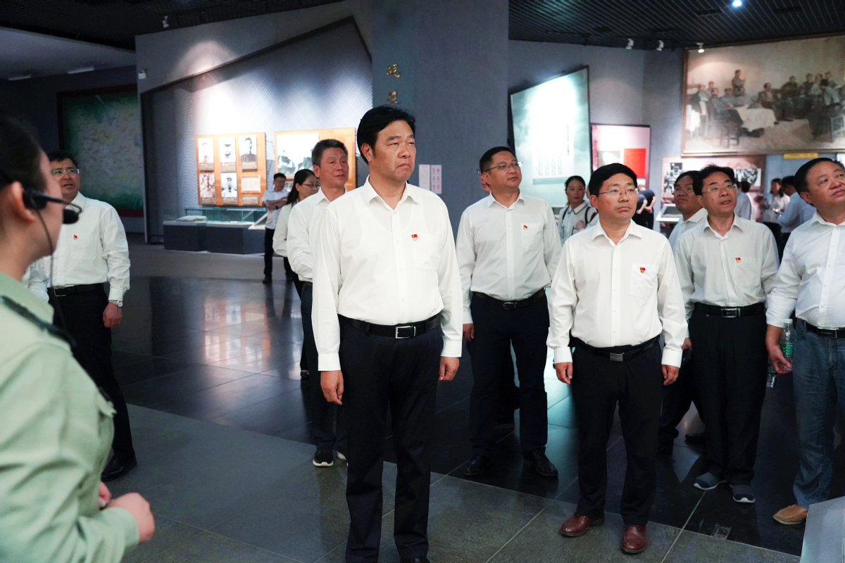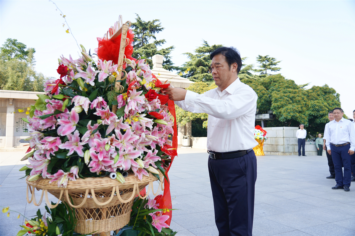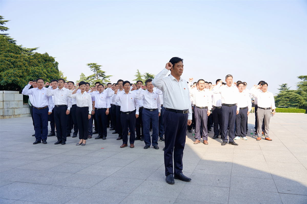 9月30日下午,国庆节前夕,江苏建筑职业技术学院党委准确把握主题教育的着力点,依托徐州红色教育资源,紧抓思想源头,开展爱国主义教育。学校党委书记孙进教授、院长沈士德教授、副书记梁惠、纪委书记魏勇、副院长曾凡远、副院长刘海波、副院长蒋兆峰,全体中层干部在淮海战役陵园开展“不忘初心、牢记使命”主题教育现场学习活动,回顾革命历史,缅怀英雄事迹,传承红色精神,汲取前进力量。在淮海战役纪念塔前敬献花圈、鞠躬敬礼,在孙进的带领下重温入党誓词、重问入党初心;在淮海战役纪念馆里聆听红色革命故事,接受革命传统教育,接受革命精神洗礼,感悟理想信念力量。