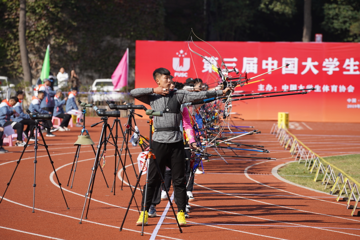 10月25日至27日,第三届中国大学生射箭(射艺)锦标赛在我校东、西田径场隆重举行。本次赛事由中国大学生体育协会主办,我校承办,共吸引了来自清华大学、北京大学、复旦大学、澳门城市大学等全国68所高校的564名运动员参赛,参赛人数为历届新高。校党委书记孙进、院长沈士德、副院长曾凡远分别出席了大赛开、闭幕式。