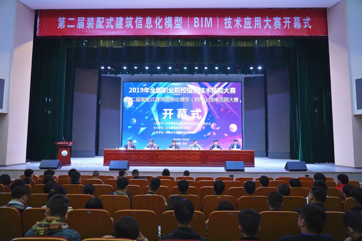 11月5日,全国第二届装配式建筑信息化模型(BIM)技术应用大赛在我校开赛。本次大赛由中国职业技术教育学会信息化工作委员主办、我校承办、山东百库教育科技有限公司提供软件及技术支持。2019年全国职业院校信息技术技能大赛徐州赛区组委会主任委员、中国职业技术教育学会信息化工作委员会主任邓志良教授、2019年全国职业院校信息技术技能大赛徐州赛区组委会副主任委员、中国职业技术教育学会信息化工作委员会副主任沈立心教授、第二届装配式建筑信息化模型(BIM)技术应用大赛赛项裁判长、全国高职高专土建类专业教学指导委员会土建施工类专业指导分委员会秘书长赵研教授、2019年全国职业院校信息技术技能大赛徐州赛区执委会主任委员、江苏建筑职业技术学院院长沈士德教授、2019年全国职业院校信息技术技能大赛徐州赛区执行委员会副主任委员、山东百库教育科技有限公司董事长高清禄先生,以及来自全国45个院校,46支代表队近300名参加会议,我院副院长刘海波主持会议。