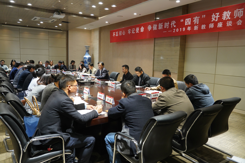 11月12日下午,为深入了解学校新教师思想动态和工作现状,鼓励新教师不忘初心、牢记使命,争做新时代“四有”好教师,我校在图书馆第一会议室召开2019年新教师座谈会。校党委书记孙进教授出席会议并与新教师亲切交流。组织部、党政办、教务处、人事处、科技处、工会等职能部门负责人以及48名新教师参加了会议,座谈会由人事处处长、教师工作部部长宋丹萍主持。