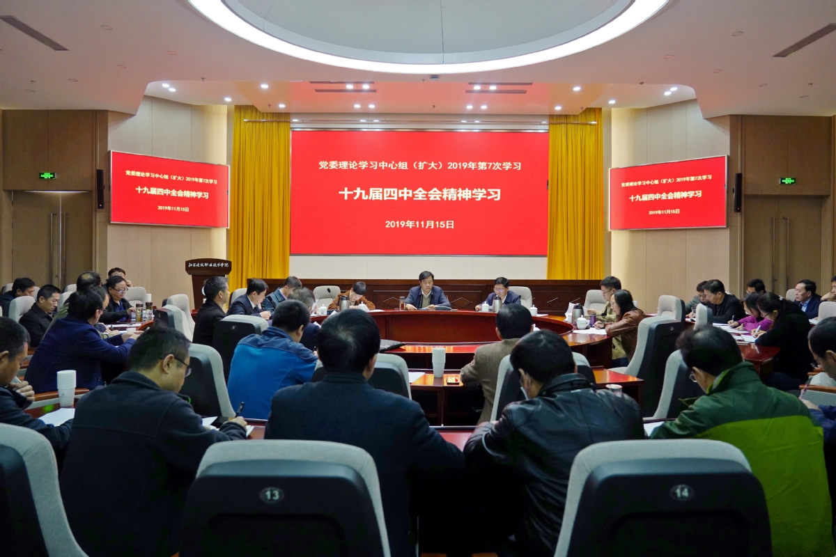 11月15日上午,校党委理论学习中心组在学术报告厅召开扩大会议,集中学习党的十九届四中全会精神。党委书记孙进教授主持学习会并作主讲发言,校党委理论学习中心组成员及全体中层干部正职参加了学习。