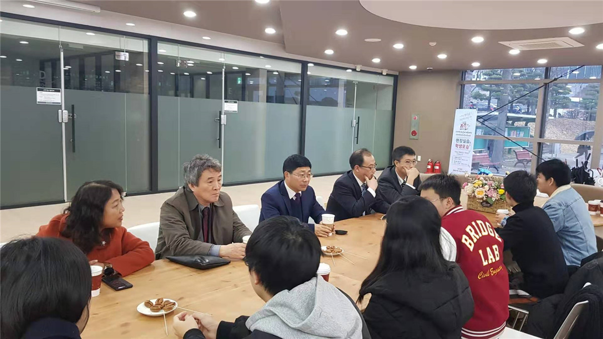 12月17日,代表团一行访问了国立韩国交通大学忠州校区,受到校长朴俊勋先生及国际交流处处长俞泰揆先生等人的热情接待。国立韩国交通大学自2011年与我校建立交流合作关系,是最早与我校互派交换生的韩国高校,双方十分重视合作项目的实施工作,项目进展良好。自2015年起,我校已累计派送了20余名学生交换进入该校学习,其中的大部分在取得我校毕业证后都选择了继续赴该校攻读本科、研究生学历。访问过程中,双方围绕学生学历提升、加强专业教师互访、深化与拓展学生交流项目和科研合作等话题进行深入探讨。会后,沈士德一行还专门看望了我校在该校交换学习的学生代表。