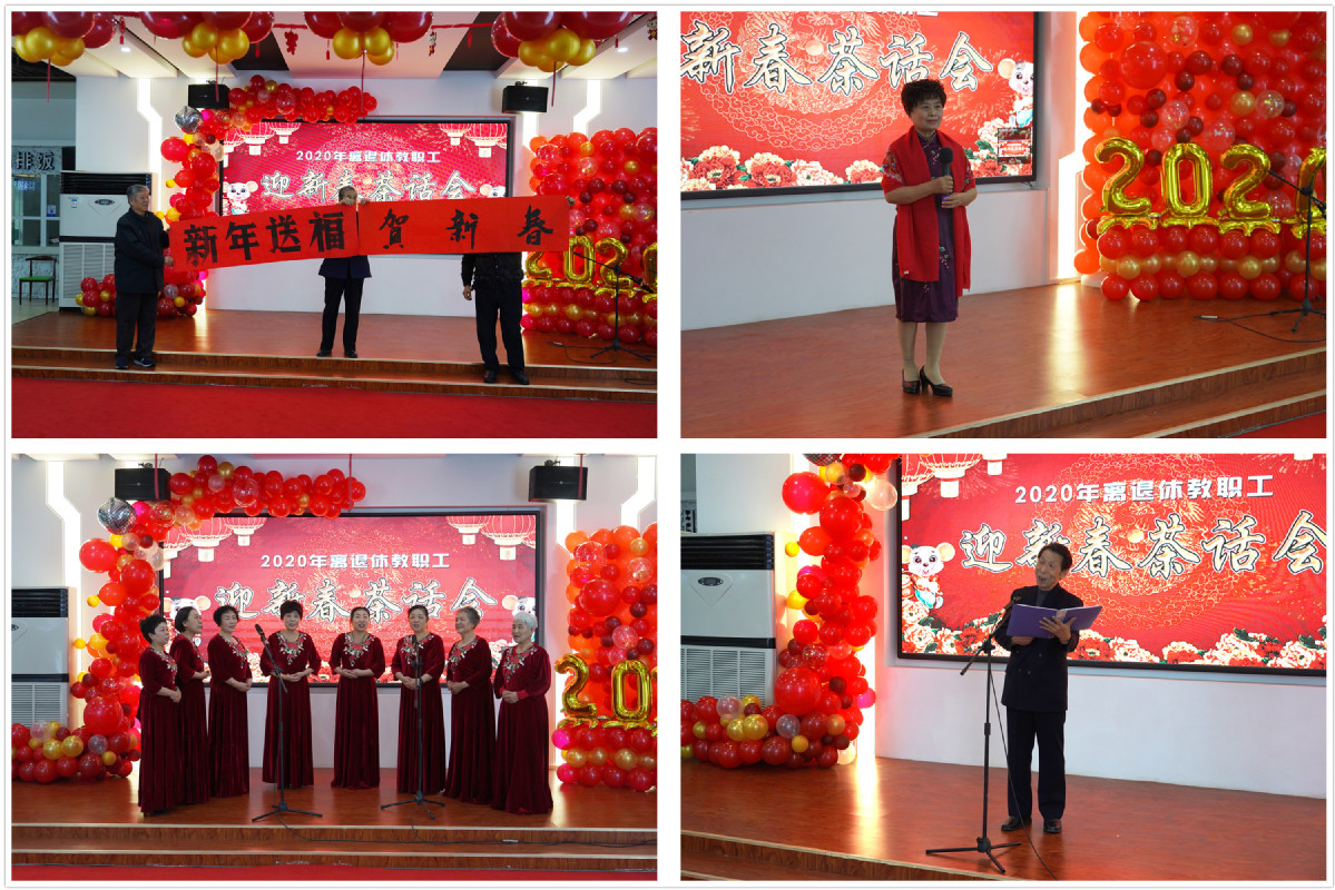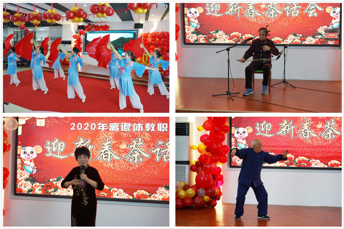 当天下午,学校还举办了2020年离退休教职工迎新春茶话会。校领导孙进、沈士德、梁惠、曾凡远、刘海波、蒋兆峰参加了茶话会。