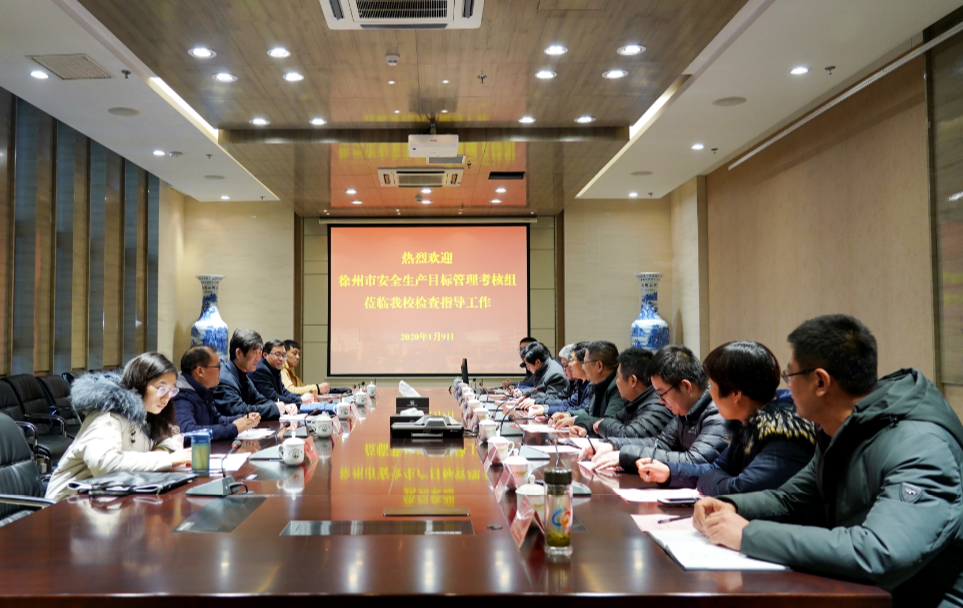 1月9日下午,以徐州市应急管理局副局长郝唐为组长的市安全生产目标管理考核组一行五人对我校2019年度安全生产工作进行考核。院长沈士德教授出席汇报会,副院长蒋兆峰主持会议,党政办公室、学工处、基建处、后勤管理服务中心、实验实训管理处、网络与信息中心等部门负责同志参加会议。
