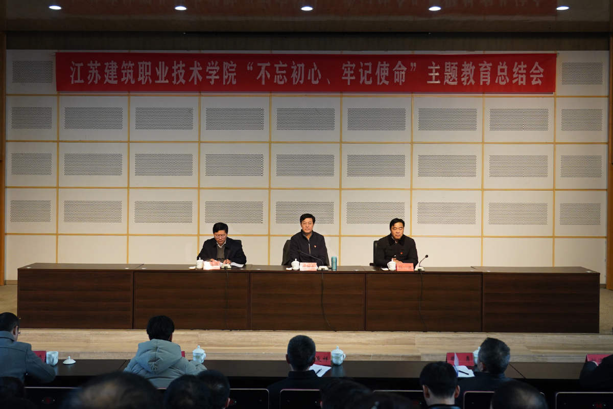 1月14日,我校召开“不忘初心、牢记使命”主题教育总结会,深入贯彻习近平总书记在“不忘初心、牢记使命”主题教育总结大会上的重要讲话精神以及省委主题教育总结大会精神,认真总结学校主题教育的成效、做法和经验,不断推动主题教育纵向深入。省委主题教育第十四巡回指导组副组长叶柏森同志出席并讲话,指导组成员顾俊祥出席会议。校党委书记孙进同志作总结讲话,校党委副书记、院长沈士德同志主持会议。学校党委领导班子全体成员,中层干部,党支部书记,市、区人大、政协代表,教师党员代表参加了大会。