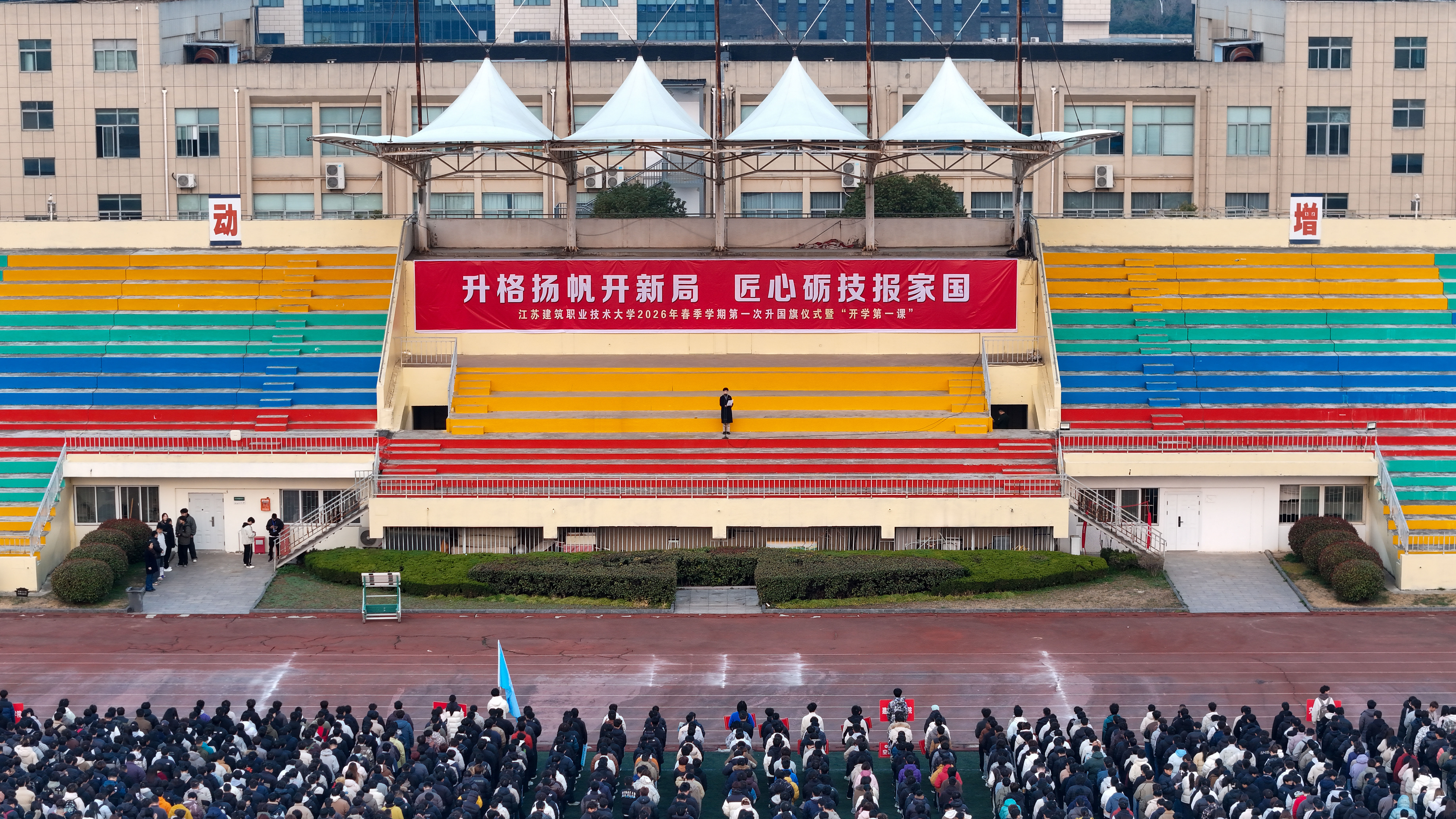 为厚植师生家国情怀、凝聚逐梦奋进力量,引导全体学生以昂扬姿态投入新学期的学习生活,3月9日,我校2026年春季学期第一次升国旗仪式暨“开学第一课”在西操场举行。校党委副书记梁惠出席仪式并以《升格新起点 匠心赴新程 技能报家国》为题,为全校师生讲授新学期第一课。